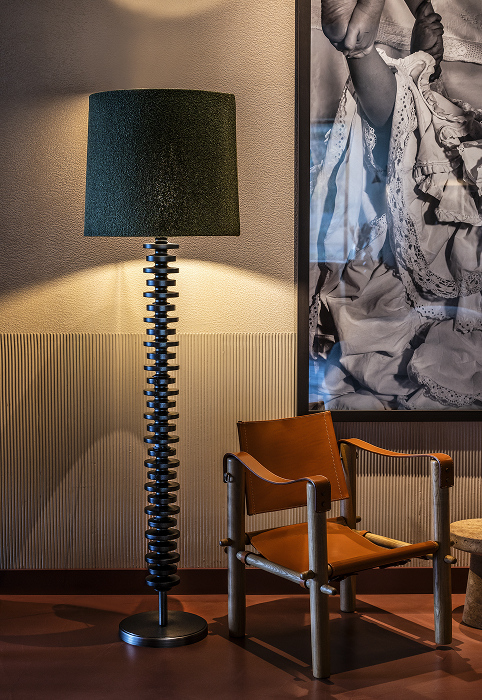 Kôa inspira-se na arte tribal africana, refletida nas suas formas marcantes e esculturais. A estrutura composta por elementos torneados, revelam a mestria do trabalho artesanal. Esta peça valoriza a textura natural da madeira, visível mesmo sob o acabamento escuro, que se harmoniza subtilmente com o metal em gun metal, criando uma presença coesa e sofisticada. Com proporções equilibradas e carácter distintivo, o Kôa destaca-se em qualquer ambiente com uma elegância serena e poderosa.