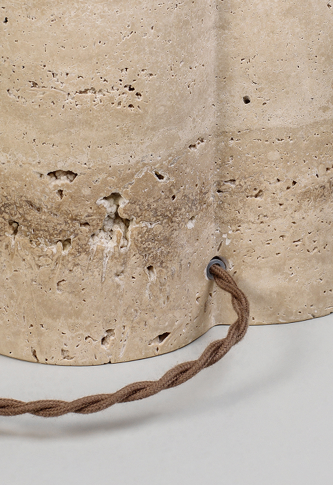 Com uma presença escultórica e imponente, o Otto destaca-se pela sua forma maçuda e arredondada, que transmite uma sensação de solidez e equilíbrio. Esculpido em pedra natural com acabamento em travertino de poro aberto, revela uma textura rica e orgânica que reforça o carácter autêntico da peça. A sua silhueta densa e curvilínea evoca uma estética brutalista, suavizada por contornos delicados que criam uma harmonia única entre peso visual e leveza tátil.