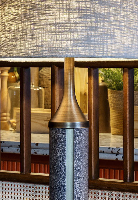 Rey é a personificação de um design audaz e de destaque. Combinando sofisticação e modernidade, cada peça é revestida com faux cuir efeito galuchat, em tom bronze com delicados reflexos dourados que capturam a luz de forma única, criando uma presença luminosa e imponente. Disponível tanto em versão de mesa quanto de pé, a Série Rey é uma afirmação de estilo, ideal para ambientes que exigem uma peça de forte personalidade, sem perder a subtileza da sua estética refinada.